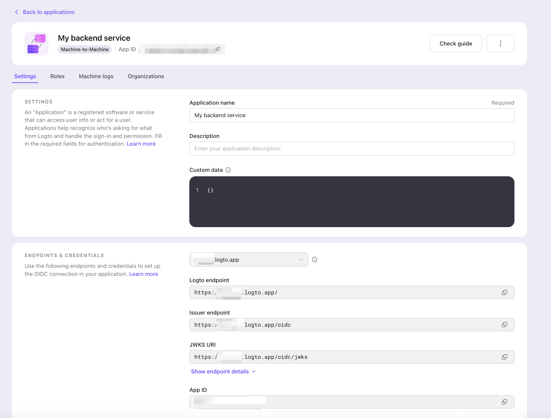 - Criar um aplicativo Máquina para Máquina (M2M) no Logto Console.