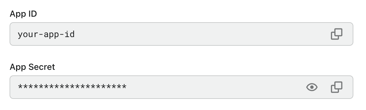 Você pode encontrar o App ID e o App Secret na página de detalhes do seu aplicativo M2M: